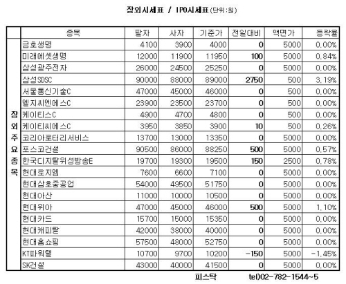 장외 주요 종목들은 13일 업종별로 등락이 엇갈렸다.