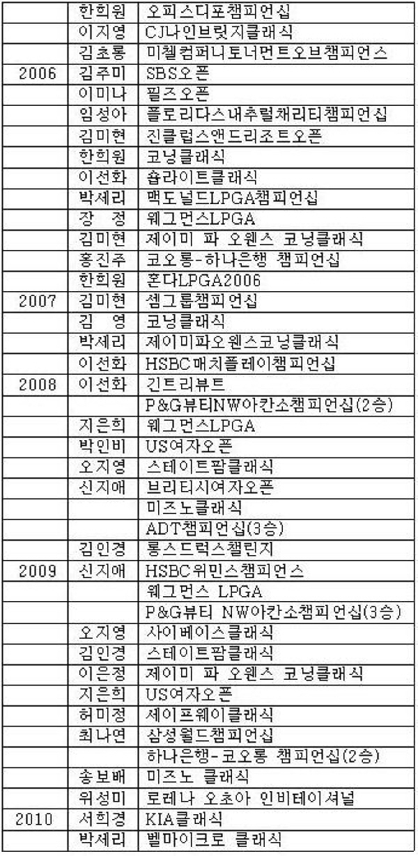 [표]LPGA 투어 한국 선수 우승 일지