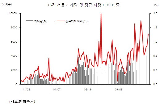 한화증권 이호상 연구원은 “야간선물 시장은 이제 걸음마 단계를 넘어서기 시작했다”고 전했다.