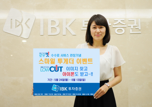 IBK투자증권은 24일부터 6월 13일까지 ‘로우컷 수수료제 서비스’ 런칭기념 ‘스마일 투게더' 이벤트를 실시한다.