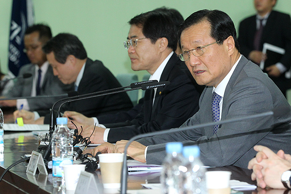 윤증현 기획재정부장관이 26일 오전 정부과천청사에서 열린 위기관리대책회의에 참석해 모두발언을 하고 있다.