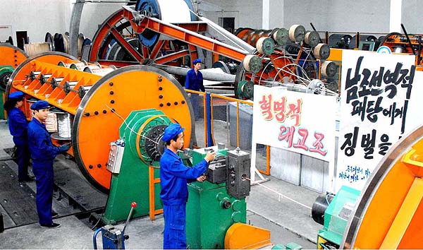 [포토]남한 비판 구호아래 일하는 북한의 노동자