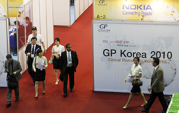 8일 오전 일산 킨텍스에서 세계적인 글로벌기업과 국내 부품소재기업간 협력을 위한 '글로벌 파트너쉽 코리아2010' 이 열린 가운데, 해외 기업관계자들이 부스를 둘러보고 있다.