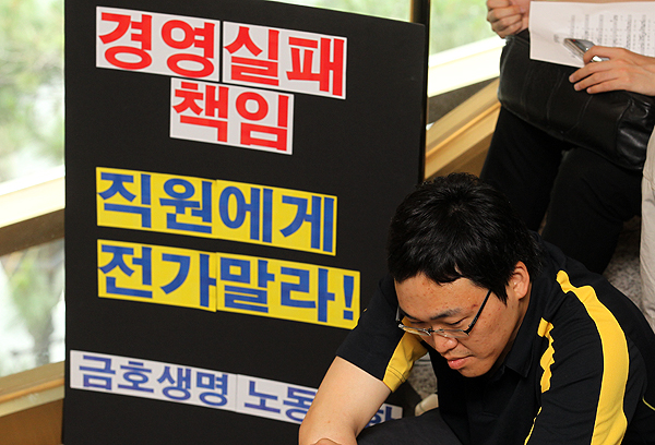 [포토]주총결과 기다리는 금호생명 노조원