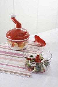 ‘퀵 쉐프’는 전기 모터 없이 가동돼 소음이 적고 뚜껑에 장착된 손잡이에 칼날이 연결돼 있어 음식물이 바깥으로 튀지 않는 것이 특징이다.