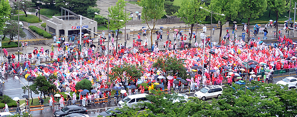 대한민국과 그리스의 경기가 열릴 예정인 12일 오후 응원인파들이 서울 삼성동 거리를 메우고 있다.