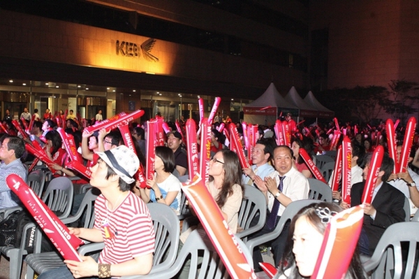 지난 17일 서울 을지로 외환은행 본점에서 외환은행 고객 및 직원 약 6백여명이 참가해 월드컵 2차전, 대 아르헨티나전 선전을 기원하며 열띤 응원전을 펼쳤다.