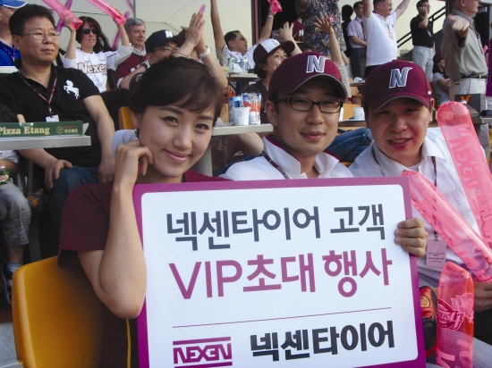 이날 초청행사는 최근 넥센타이어가 출시한 프리미엄 제품을 구매한 고객중 이벤트 응모를 통해 당첨된 고객을 대상으로 진행됐으며 야구티켓(500명)과 응원용품, VIP석 초대권 및 외식상품권 등을 증정했다.