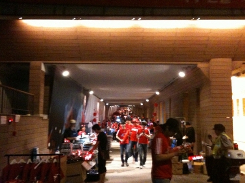 ▲잠수대교남단 플로팅아일랜드입구에서 시민들이 응원을 위해 이동중이다. (사진=김하늬 기자)