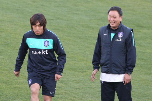 ▲24일 새벽(한국시간) 남아프리카공화국 루스텐버그 올림피아 파크 스타디움에서 열린 한국대표팀 회복훈련에서 허정무 감독이 활짝 웃고 있다.(사진=연합뉴스)