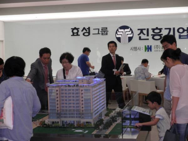 25일 진흥기업이 시공하는 경기도 고양시 일산동구 백석동 더 루벤스 카운티 모델하우스에 지난 주말 많은 방문객들이 몰려들었다. 더 루벤스 시티는 지하4층 지상10층 규모 오피스텔로 총 522실중 360실이 전용면적 41.39㎡ 이하인 소형평형으로 구성된다. 청약기간은 오는 30일부터 다음달 2일까지다 문의 1577-1331.