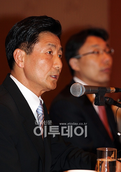 최병렬 신세계이마트 대표가 29일 오전 서울 소공동 조선호텔에서 기자간담회를 갖고 '이마트몰'을 통해 본격적인 온라인쇼핑몰 시장 진출을 밝히고 있다.