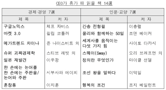 ▲삼성경제연구소가 여름휴가 때 CEO가 읽어야 할 추천도서 14선.(삼성경제연구소)