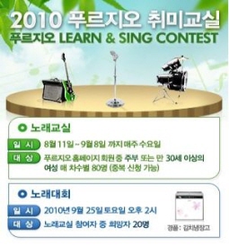8월11일 1차 노래교실 '애인있어요'(이은미), '꿈을 꾸다'(김태우)를 필두로 시작되는 '푸르지오 LEARN & SING CONTEST'는 '푸르지오 밸리' 홈페이지(http://valley.prugio.com)에서 자세한 내용을 확인할 수 있다.
