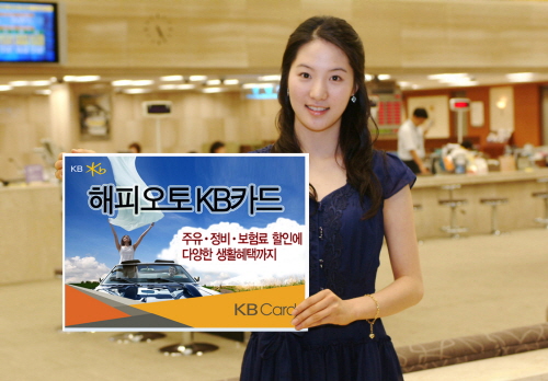 KB카드는 8일 SK네트웍스 및 더케이손해보험과 제휴해 자동차 관련 서비스를 제공하는 '해피오토KB카드'를 출시한다고 밝혔다.