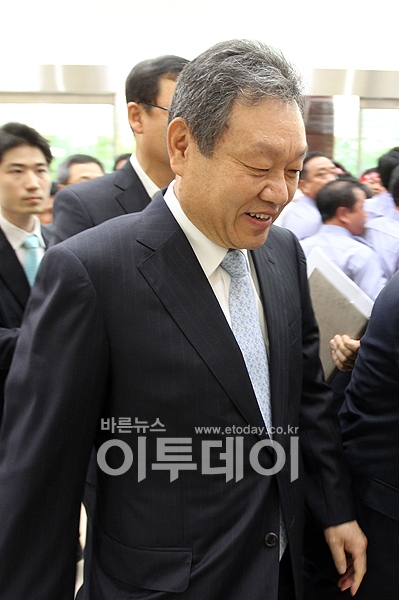 KB금융지주 회장으로 선임될 어윤대 내정자가 13일 임시주주총회에 참석하기 위해 여의도 국민은행 본점으로 들어가고 있다.