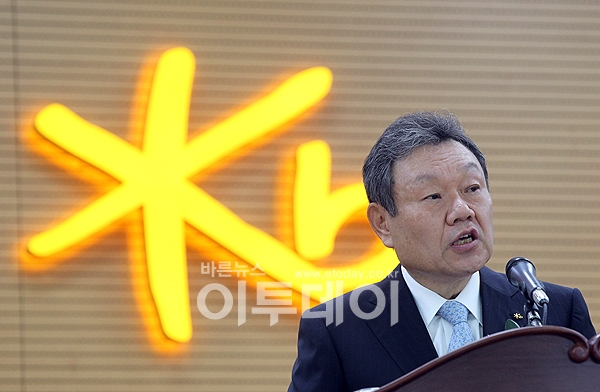 13일 여의도 국민은행 본점에서 열린 임시주주총회에서 KB금융지주회장으로 선임된 어윤대 회장이 취임사를 하고 있다.