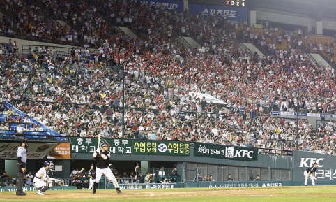 2010 프로야구 시즌 관중이 400만을 돌파한 가운데 20일 서울 잠실경기장에서 벌어진 두산 베어스와 LG 트윈스와의 경기에서 경기장을 가득메운 관중들이 30도에 육박하는 무더위 속에 열띤응원을 펼치고 있다.