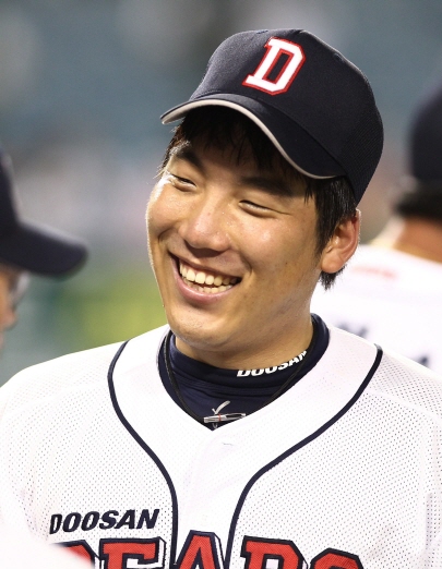 두산 베어스의 김현수가 20일 서울 잠실경기장에서 벌어진 2010 프로야구 LG 트윈스와의 경기에서 8대5로 역전승한 뒤 활짝 웃고 있다.