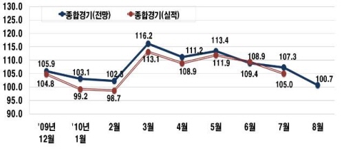 전국경제인연합회는 27일 "8월 기업경기실사지수(BSI) 전망치가 100.7로 나타나 하반기 기업경기가 둔화될 가능성이 높아지고 있다"고 밝혔다. 특히 BSI는 지난 6월 이후 3개월 연속 하락세를 기록하고 있다.