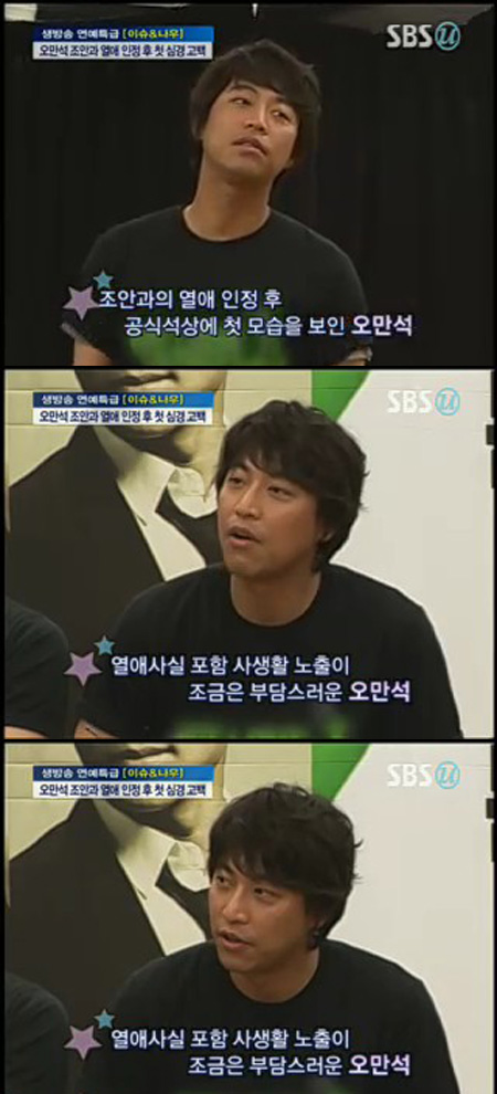 지난 2일 방영된 SBS'배기완 최영아 조형기의 좋은아침'에서 오만석은 "(열애설 관련)보는 사람들에게 가십거리로 생각할 수 있지만 당사자들에는 평생 잊지 못할 일이 될 수도 있다"고 말했다.