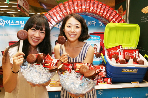 오리온은 4일 전국 이마트 50여 곳에 냉장 매대를 설치하고 초코파이로 아이스크림을 만들어 시식행사를 한다고 밝혔다.