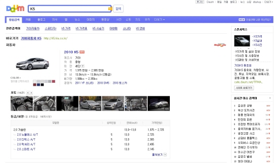 다음커뮤니케이션은 자동차의 제조사, 가격, 연비 등에 대한 모든 정보를 편리하게 확인할 수 있는 '자동차 검색 서비스'를 제공한다고 12일 밝혔다.