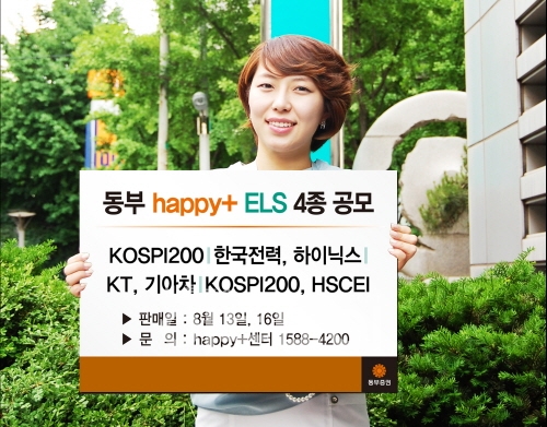 ‘동부 happy+ 파생결합증권(ELS) 제342회’는 한국전력과 하이닉스를 기초자산으로 하는 2년 만기 상품으로 4개월 주기의 조기상환평가일 및 만기평가일에 기초자산의 종가가 최초기준가격의 90%(4,8개월), 85%(12,16개월), 80%(20,24개월) 이상이면 연17.91%의 수익이 지급된다. 최종만기일인 2년 시점에 상환조건이 충족되지 않을 경우에도 투자기간 동안 기초자산이 최초기준가격의 55%미만으로 하락한 적이 없으면(장중포함) 35.82%(연17.91%)의 수익이 지급된다.
