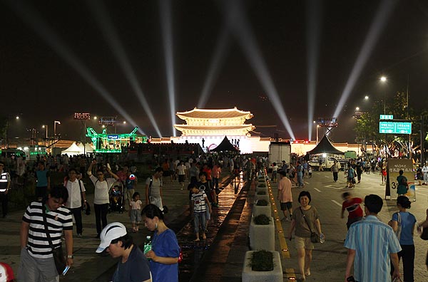 광복절인 지난 15일 저녁 많은 시민들이 차량이 통제된 세종로와 광화문광장을 찾아 야경을 즐기고 있다.