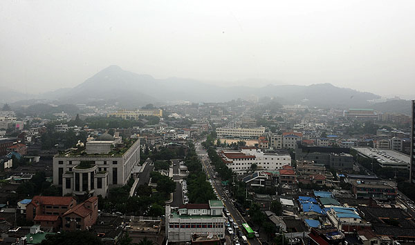 전국이 대체로 흐리고 남부지방을 중심으로 많은 비가 내릴 것으로 예상되는 16일 오전 서울 도심에 짙은 안개가 끼어있다.