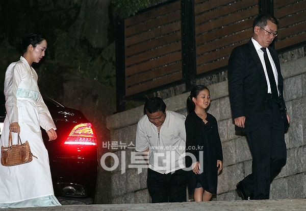 고 정주영 현대그룹 명예회장의 부인인 변중석 여사의 3주기를 맞아 16일 오후 범 현대가 일원들이 서울 청운동 정 명예회장의 자택에서 모인 가운데 정의선 현대차 부회장 일가가 저택으로 들어서고 있다