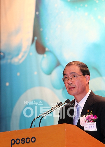 정호열 공정거래위원장이 18일 오후 포스코 센터에서 열린 포스코패밀리 상생협력 및 공정거래 협약식에서 축사를 하고 있다.