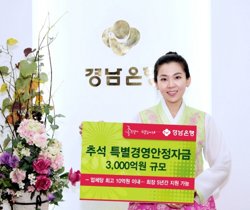 경남은행은 오는 23일부터 10월 22일까지 중소기업 ‘추석 특별경영안정자금’ 3000억원을 대출한다고 19일 밝혔다.