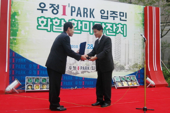 입주민 600여명과 정갑윤 한나라당 국회의원, 조용수 울산시 중구청장 등이 참석한 가운데 열린 이날 행사에서 입주민들은 현장소장이었던 현대산업개발 김종팔 상무에게 감사패를 전달하는 순서를 마련해 시공사와의 화합의 의미를 더했다.