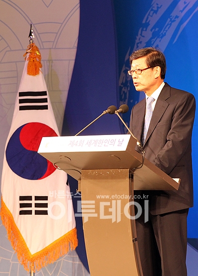 김황식 국무총리가 5일 오전 서울 광장동 쉐라톤워커힐호텔에서 열린 '제4회 세계한인의 날' 기념식에서 치사를 하고 있다.