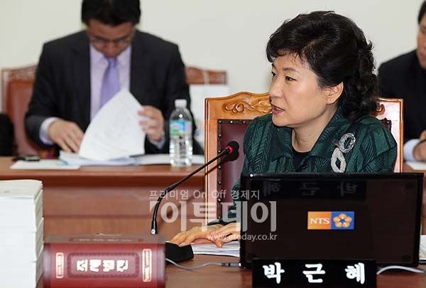 박근혜 한나라당 전 대표가 7일 서울시 종로구 수송동 국세청에서 열린 국회 기획재정위 국정감사에 참석해 이현동 국세청장에게 질의하고 있다.