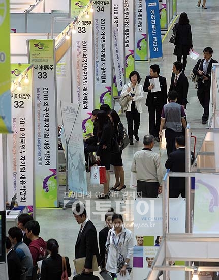 2010 외국인투자기업 채용박람회가 8일 오전 삼성동 코엑스에서 열린 가운데 구직자들과 관계자들로 북적이고 있다.