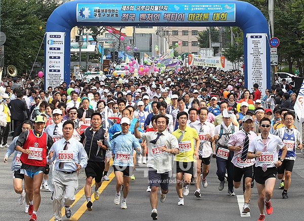 8일 오후 구로 디지털단지 마리오타워 광장에서 '제 8회 전국 벤처인 넥타이 마라톤 대회'가 열린 가운데 참가자들이 마라톤 출발을 하고 있다.