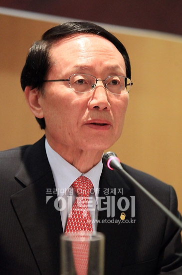 바젤위원회 규제개편 관련 공동 기자회견이 19일 오후 서울 삼성동 코엑스에서 열린 가운데 김종창 금융감독원장이 발언을 하고 있다. 이날 바젤은행감독위원회(BCBS)는 G20 서울 정상회의의 성공적 개최를 위해 BCBS의 금융규제 개혁 방안 마무리와 자본규제 강화와 함께 유동성비율 규제를 확정할 계획이다.