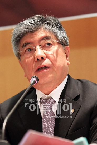 바젤위원회 규제개편 관련 공동 기자회견이 19일 오후 서울 삼성동 코엑스에서 열린 가운데 김중수 한국은행 총재가 발언을 하고 있다. 이날 바젤은행감독위원회(BCBS)는 G20 서울 정상회의의 성공적 개최를 위해 BCBS의 금융규제 개혁 방안 마무리와 자본규제 강화와 함께 유동성비율 규제를 확정할 계획이다.