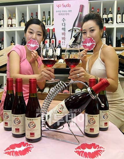 LG상사 트윈와인은 LG U+와 공동으로 'yo 수다'온라인 프로모션을 진행한다. 20일 LS 용산타워 트윈와인숍에서 모델들이 바바로제타 와인을 선보이고 있다.