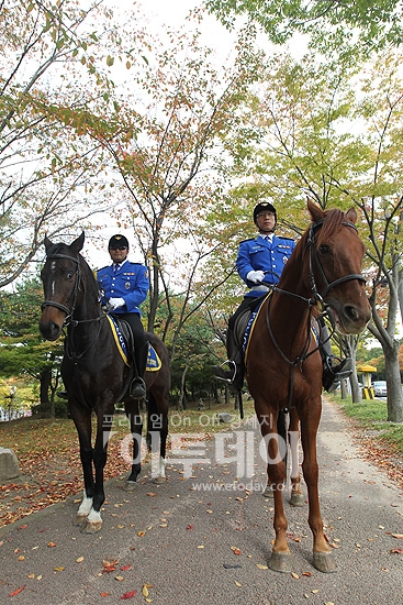 G20 재무장관ㆍ중앙은행총재 회의가 진행되고 있는 23일 오전 경북 경주시 보문관광단지 일대를 경찰기마대가 순찰하고 있다.