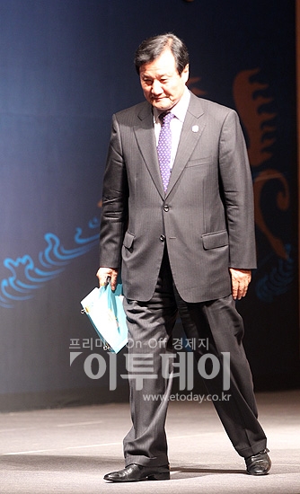 G20 재무장관·중앙은행총재 회의를 마친 윤증현 기획재정부 장관이 23일 오후 경북 경주 현대호텔 미디어센터에서 기자회견을 끝내고 회견장을 나서고 있다.