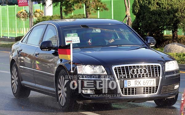 서울 G20 정상회의 둘째날인 12일 오전 독일 의전차량이 회의가 열리는 서울 삼성동 코엑스로 향하고 있다.