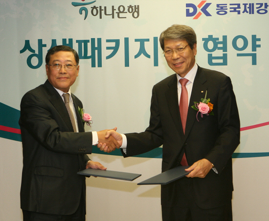양사는 18일 여의도 소재 하나IB증권빌딩에서 동국제강 김영철 사장과 하나은행 임창섭 기업금융부문장 등이 참석한 가운데 '동국제강-하나은행 상생패키지론 협약식'을 가졌다.