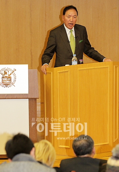 이윤우 삼성전자 대표이사 부회장이 24일 오후 관악구 신림동 서울대학교 근대법학교육백주년기념관에서 열린 ‘미래를 준비하는 대학생을 위한 CEO 초청 특강’에 참석해 학생들에게 강의를 하고 있다.