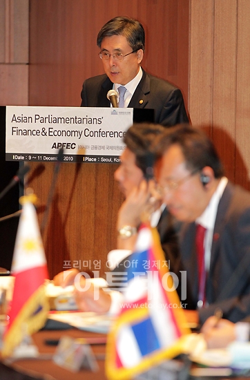 진동수 금융위원회 위원장이 10일 오전 서울 중구 장충동 신라호텔에서 열린 ‘아시아 금융경제 국제의원회의(APFEC)’에 참석해 축사를 하고 있다.