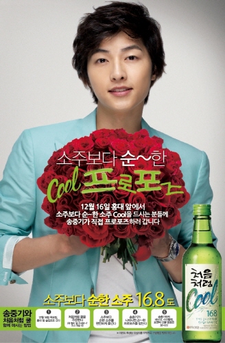 ‘송중기의 소주보다 순한 쿨(cool) 프로포즈’는 롯데주류의 ‘처음처럼 쿨’ 모델인 송중기가 거리 및 음식점에서 소비자들에게 감사 인사와 기념 선물을 전하고 함께 사진도 찍으며, 즐거운 술자리를 만들어 주고자 준비한 현장 사은 행사다.