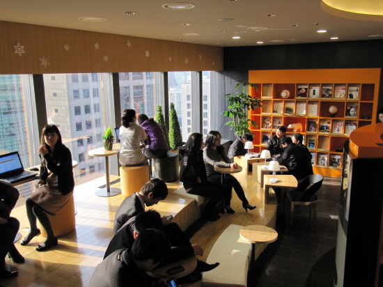 또 독서 이외의 업무협의나 외부고객들과의 미팅이 가능한 멀티 회의실과 여성 사원 전용 휴식 공간, 그리고 워킹맘들을 위한 수유실 등 시설도 설치됐다.