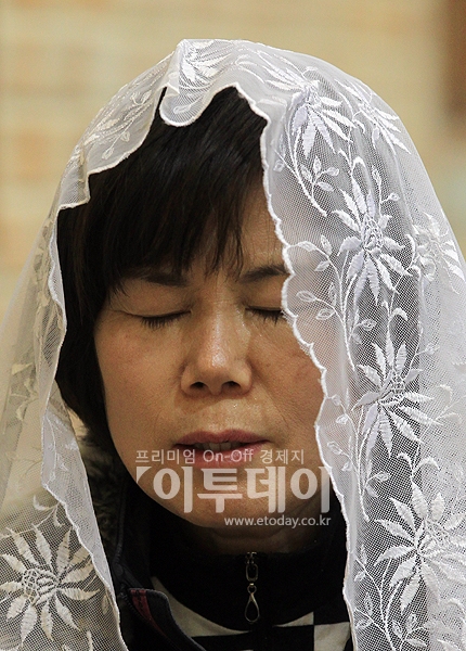 크리스마스 이브인 24일 저녁 인천시 옹진군 연평도 주민들이 성당에 모여 성탄전야 미사를 드리고 있다.